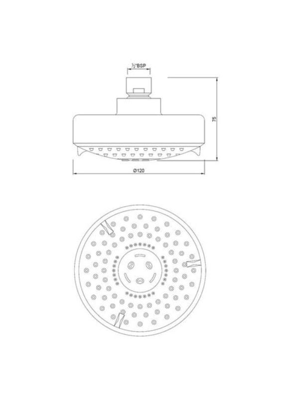 Overhead Shower Dia 120mm Round Shape Multi Flow (ABS Body Chrome Plated with Gray Face Plate) with Rubit Cleaning System