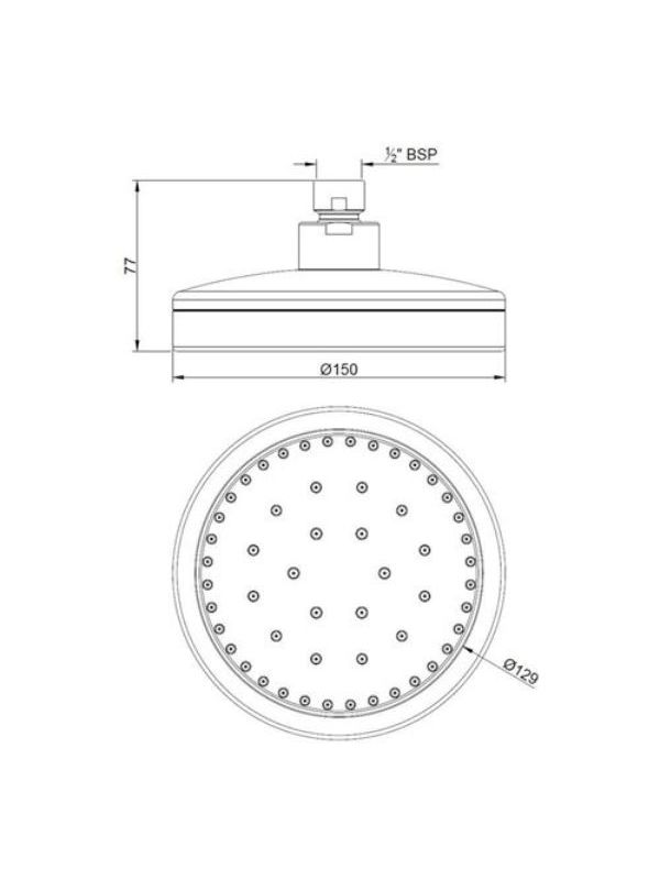 Overhead Shower Dia 150mm Round Shape Single Flow (Brass Body Chrome Plated with Gray Face Plate) with Self Cleaning Function