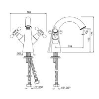 Central Hole Basin Mixer without Popup Waste System with 450mm Long Braided Hoses.