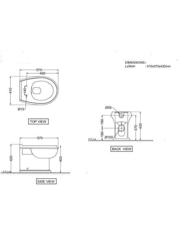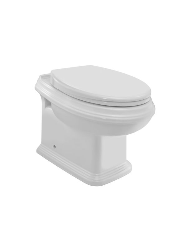 Brand: Jaquar Product Code: QPS-WHT-7955P180UFPM Product Name: Rimless Back to Wall Wc Trap Size: 180mm Trap Type: P Trap Series: Queens Prime Size: 410X570X420mm Color: White Rimless Back to Wall Wc with Uf Soft Close Seat Cover, Hinges, Fixing Accessories and Accessories Set.