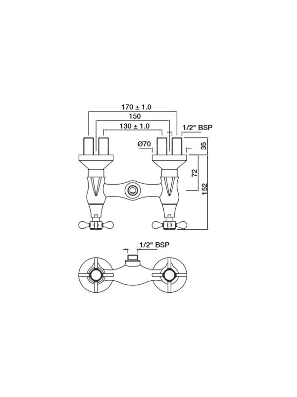 Shower Mixer for Shower Cubicles (Wall Mounted) with Connecting Legs & Flanges.