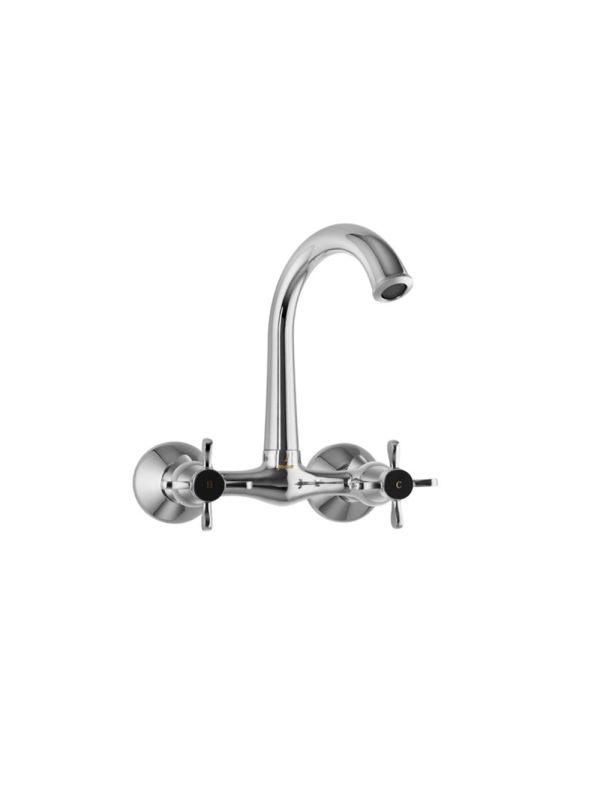 Sink Mixer with Short Swinging Spout (Wall Mounted Model) with Connecting Legs & Wall Flanges.