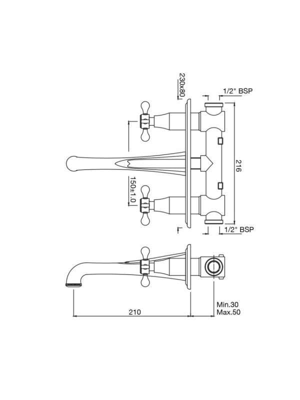 Two Concealed Stop Cocks with Basin Spout (Composite One Piece Body).