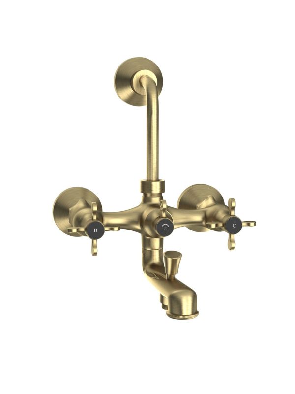 Brand: Jaquar Product Code: QQP-ABR-7281PM Product Name: Wall Mixer 3-in-1 System Series: Queens Prime Finish: Antique Bronze Wall Mixer 3-in-1 System with Provision for both Hand Shower and Overhead Shower Complete with 115mm Long Bend Pipe, Connecting Legs & Wall Flange (without Hand & Overhead Shower).