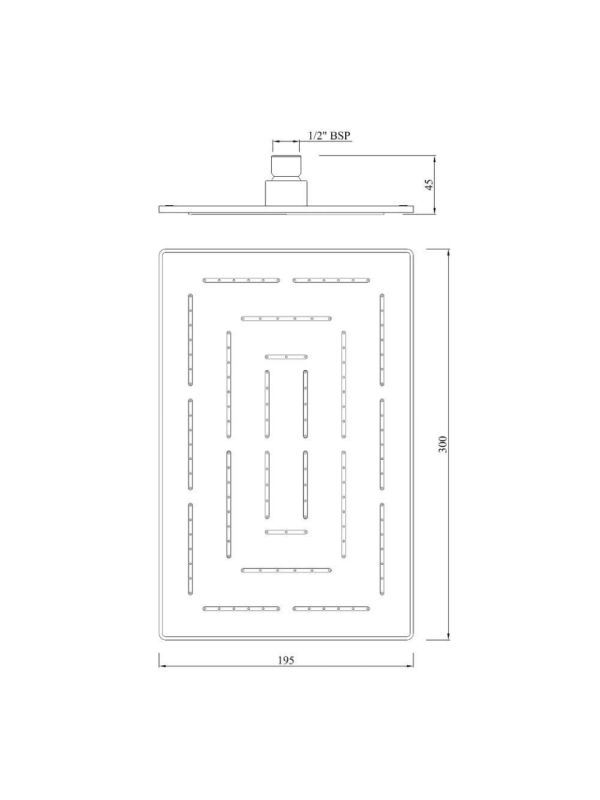 Maze Overhead Shower 190X295mm Rectangular Shape Single Flow (Body & Face Plate Stainless Steel with Chrome Finish) with Rubit Cleaning System.