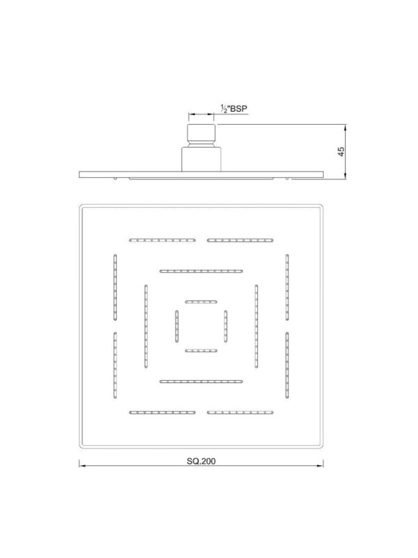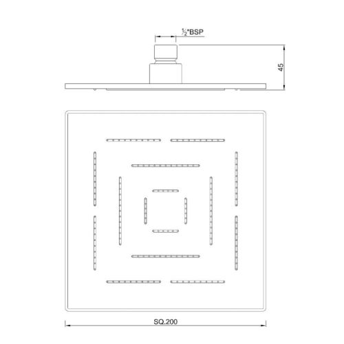 Maze Overhead Shower 200X200mm Square Shape Single Flow (Body & Face Plate Stainless Steel with Chrome Finish) with Rubit Cleaning System.
