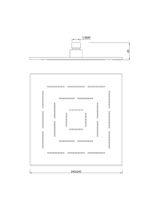 Maze Overhead Shower 240X240mm Square Shape Single Flow (Body & Face Plate Stainless Steel with Chrome Finish) with Rubit Cleaning System.
