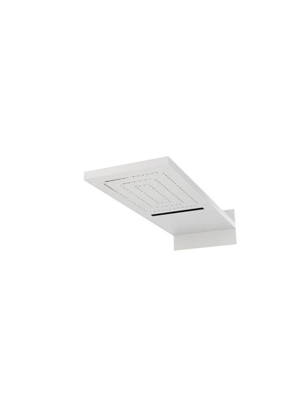 Brand: Jaquar Product Code: OHS-WHM-1649 Product Name: Water Fall Overhead Shower Range: Rain Showers Finish: White Matt Size: 552x205x25mm Water Fall Overhead Shower 552x205x25mm Flat Shape Dual Flow (Maze Rain and Cascade) with Concealed Installation Kit and Wall Flange (Shower Body and Face Plate of SS Chrome Plated) with Rubit Cleaning System.