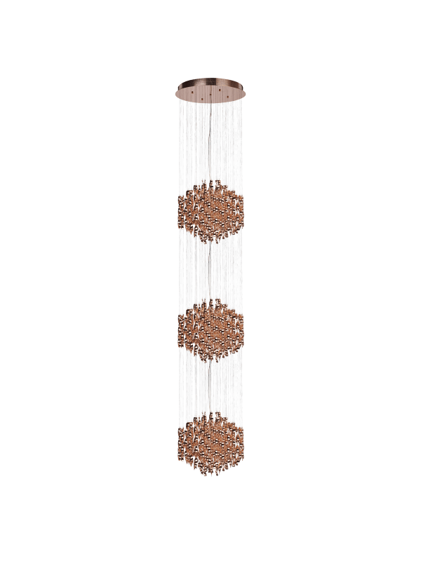 Brand: Jaquar Name: Rose Gold Pendant Light Three Balls Model Code: KCH-RDG-MD400500654C No. Of Holder: 24 Holder Type: G9 Power: 42W Color: Rose gold Finish: Rose gold Product Dimensions: 680x2500mm Quick Overview: