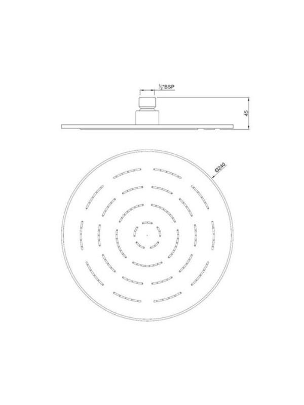 Maze Overhead Shower ø240mm Round Shape Single Flow (Body & Face Plate Stainless Steel with Chrome Finish) with Rubit Cleaning System