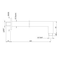 Shower Arm 400x25x25mm Square Shape For Wall Mounted Showers with Flange.