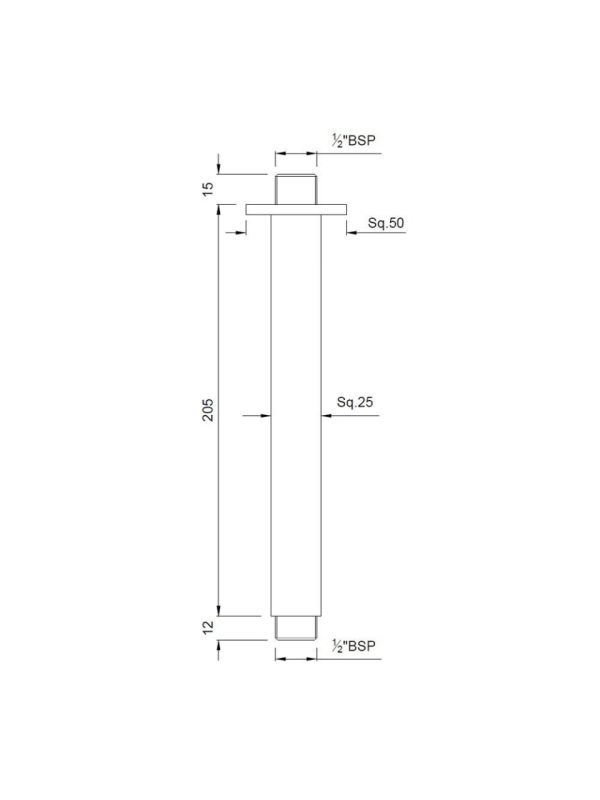 Shower Arm 200x25x25mm Square Shape For Ceiling Mounted Showers with Flange.