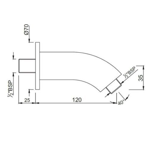 Shower Arm Casted 120mm Long Heavy Body Round Shape For Wall Mounted Showers with Wall Flange.
