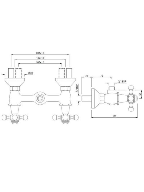 Shower Mixer for Shower Cubicles (Wall Mounted) with Connecting Legs & Flanges