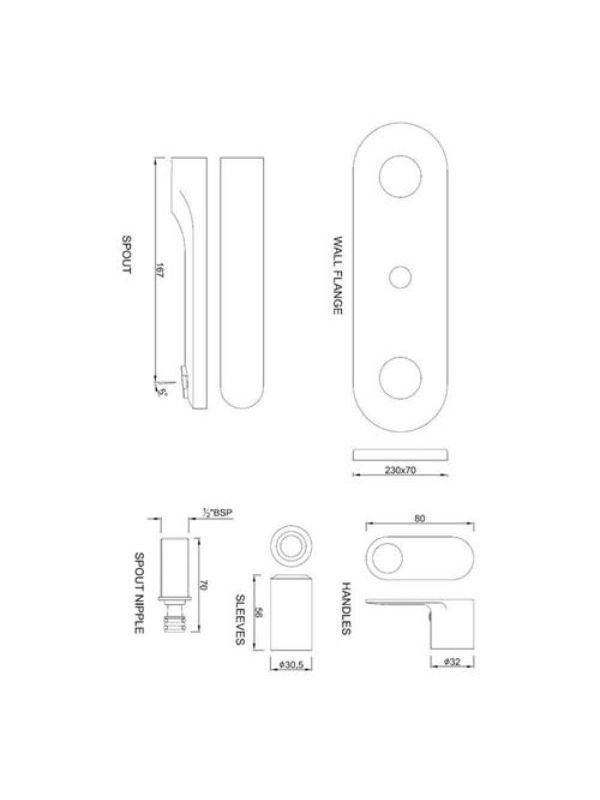 Exposed Part Kit of Single Concealed Stop Cock Consisting of Operating Lever, Cartridge Sleeve of Wall Flange (with Seals) & Basin Spout (Compatible with ALD-441)