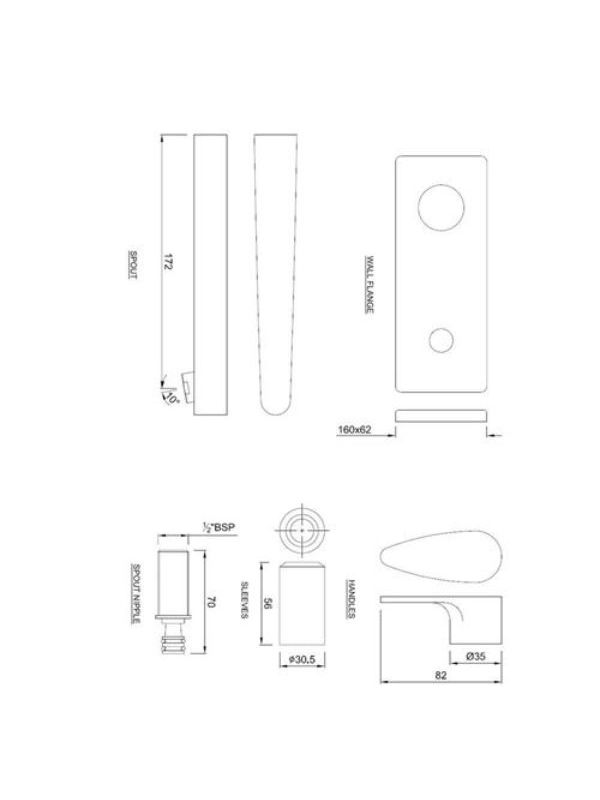 Exposed Part Kit of Single Concealed Stop Cock Consisting of Operating Lever, Cartridge Sleeve, Wall Flange (with Seals) & Basin Spout (Compatible with ALD-441)