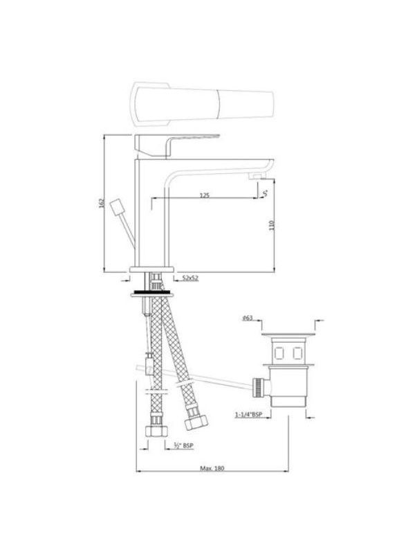 Single Lever Basin Mixer with Popup Waste with 450mm Long Braided Hoses