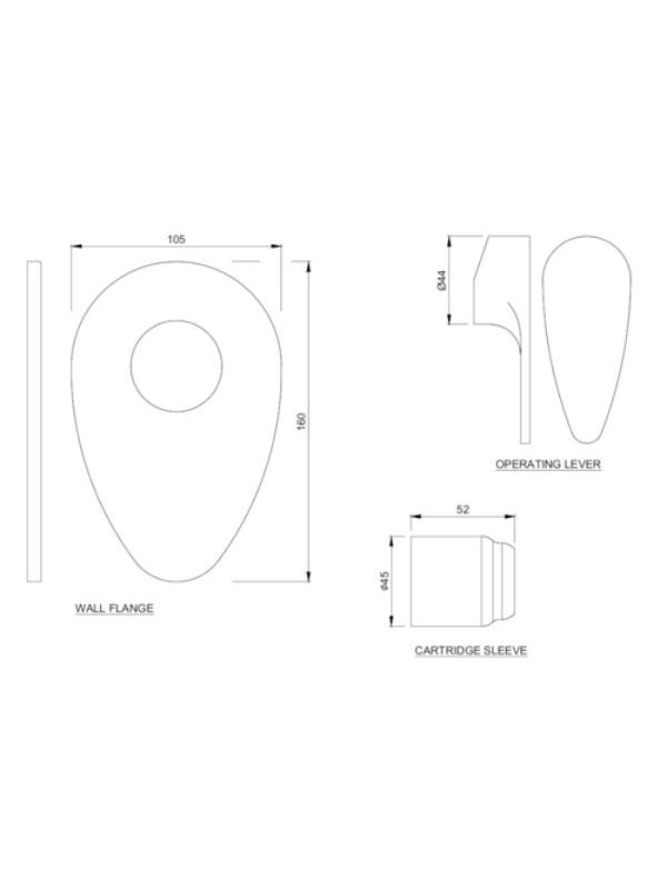 Single Lever Exposed Parts Kit of Deusch Mixer Consisting of Operating Lever, Cartridge Sleeve, Wall Flange (with Seals), (Compatible with ALD-227 & ALD-229)