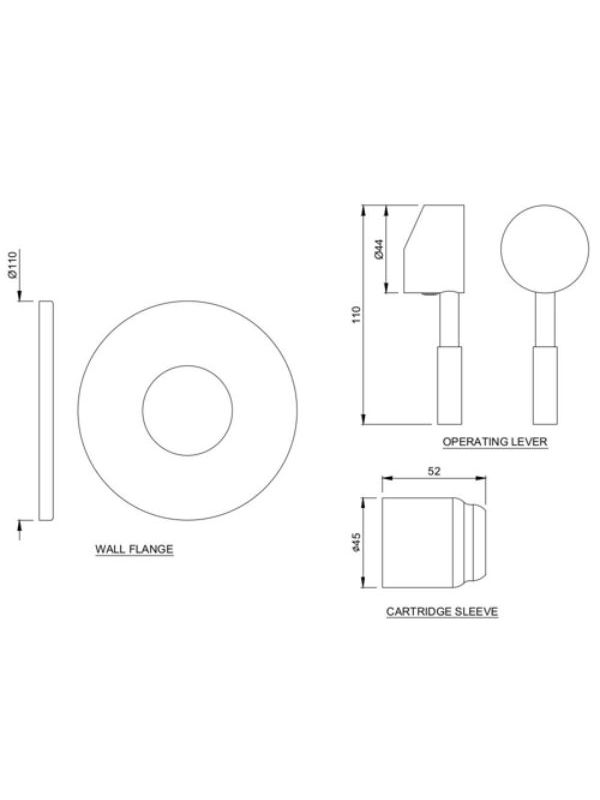 Single Lever Exposed Parts Kit of Deusch Mixer Consisting of Operating Lever, Cartridge Sleeve, Wall Flange (with Seals), (Compatible with ALD-227 & ALD-229)
