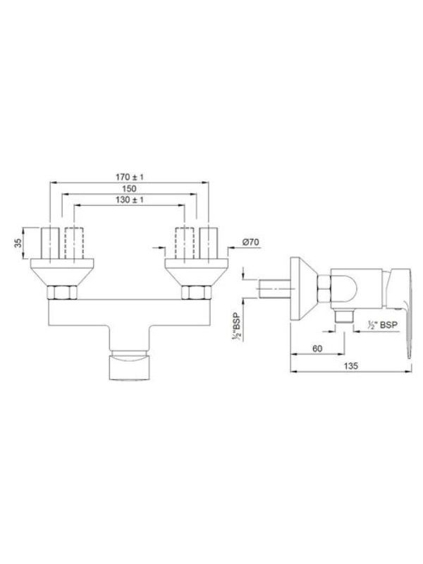 Single Lever Exposed Shower Mixer for Connection to Hand Shower with Connecting Legs & Wall Flanges