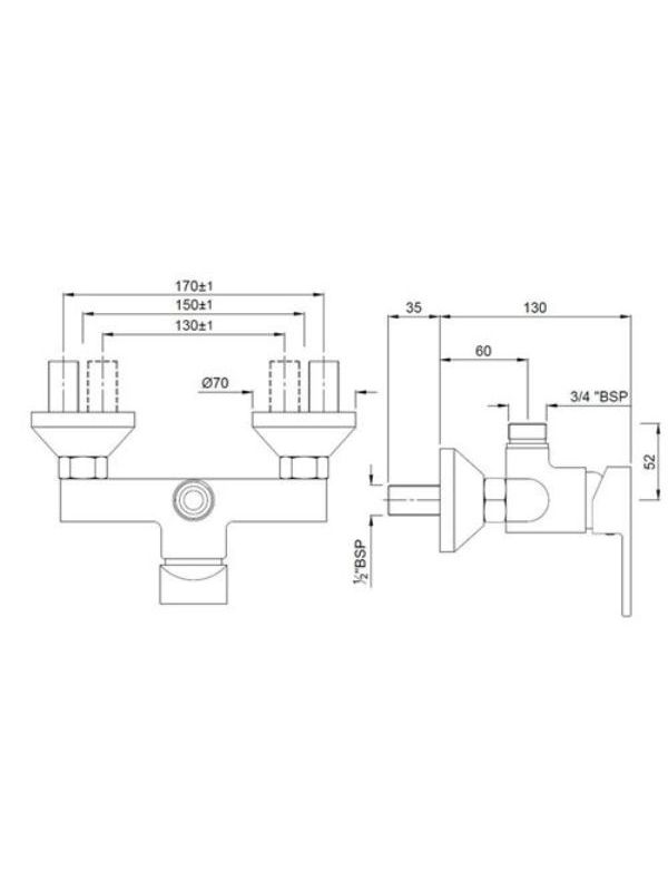 Single Lever Exposed Shower Mixer With Provision For Connection to Exposed Shower Pipe (SHA-1211) With Connecting Legs & Wall Flanges.
