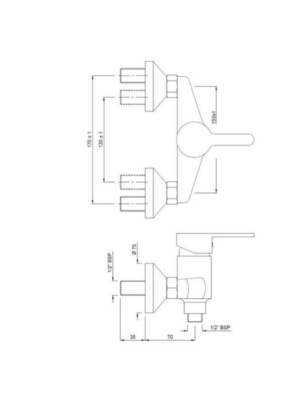 Single Lever Exposed Shower Mixer for connection to Hand Shower with Connecting Legs & Wall Flanges