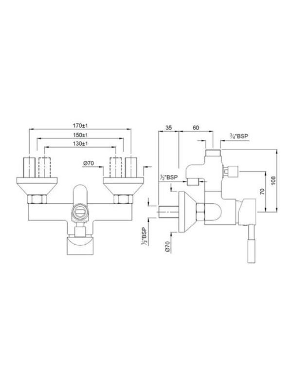 Single Lever Exposed Shower Mixer With Provision For Connection to Exposed Shower Pipe (SHA-1213) & Hand Shower With Connecting Legs & Wall Flanges