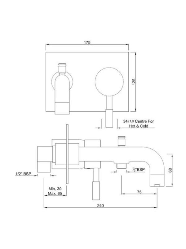 Single Lever High Flow Bath & Shower Mixer (Concealed Body) Wall Mounted Model with Button Spout (Composite One Piece Body)
