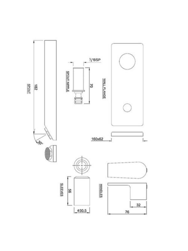 Exposed Part Kit of Single Concealed Stop Cock Consisting of Operating Lever, Cartridge Sleeve, Wall Flange (with Seals) & Basin Spout (Compatible with ALD-441)