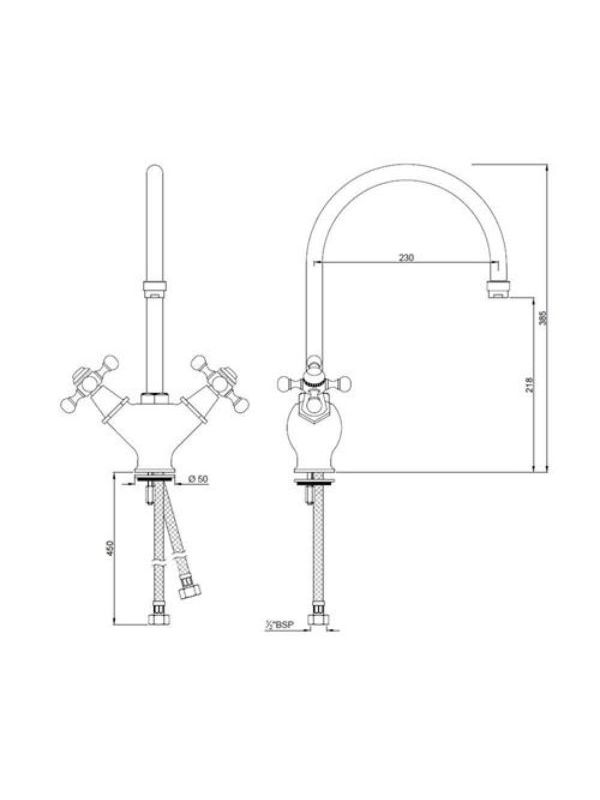 Sink Mixer, 1-Hole with Regular Spout (Table Mounted Model) with 450mm Long Braided Hoses