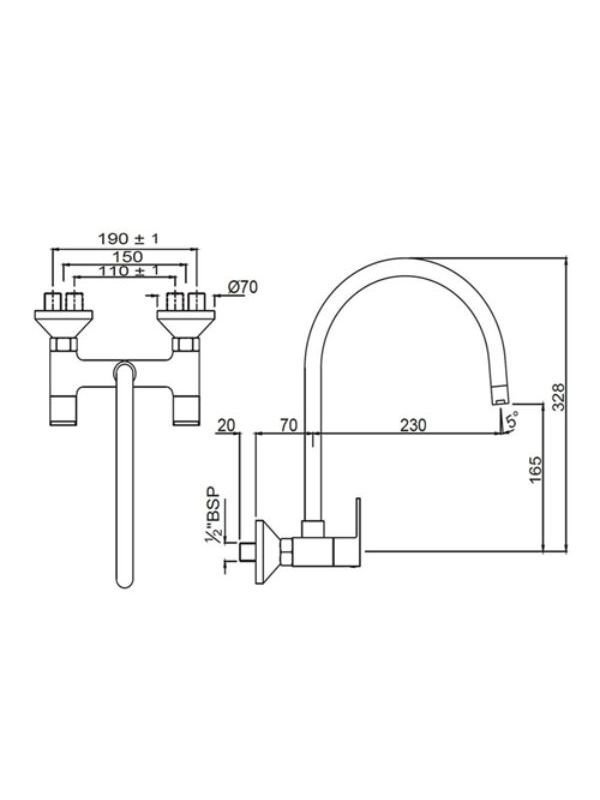 Sink Mixer with Regular Swinging Spout (Wall Mounted Model) With Connecting Legs & Wall Flanges