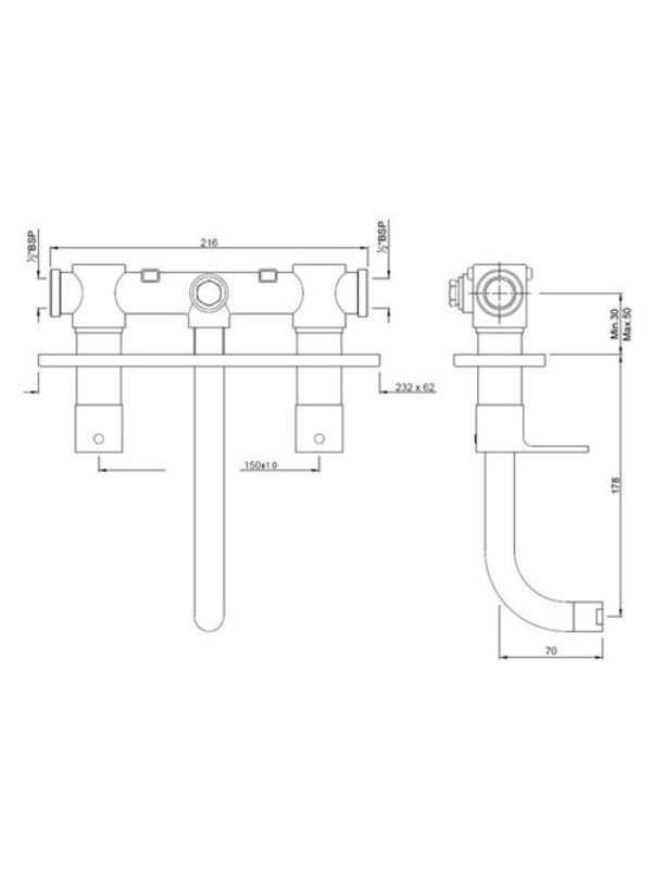 Two Concealed Stop Cocks with Basin Spout (Composite One Piece Body)