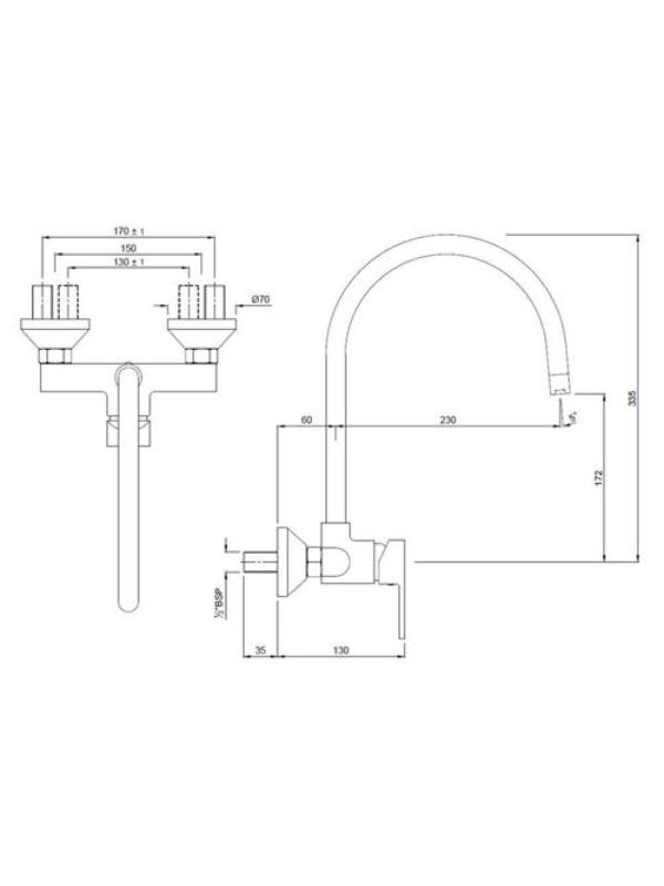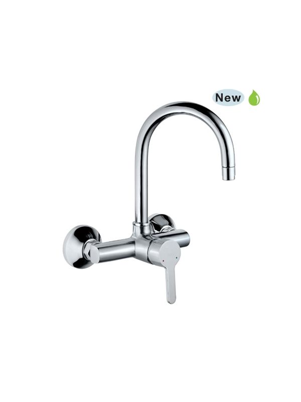 Single Lever Sink Mixer With Swinging Spout on Upper Side (Wall Mounted Model) With Connecting Legs & Wall Flanges