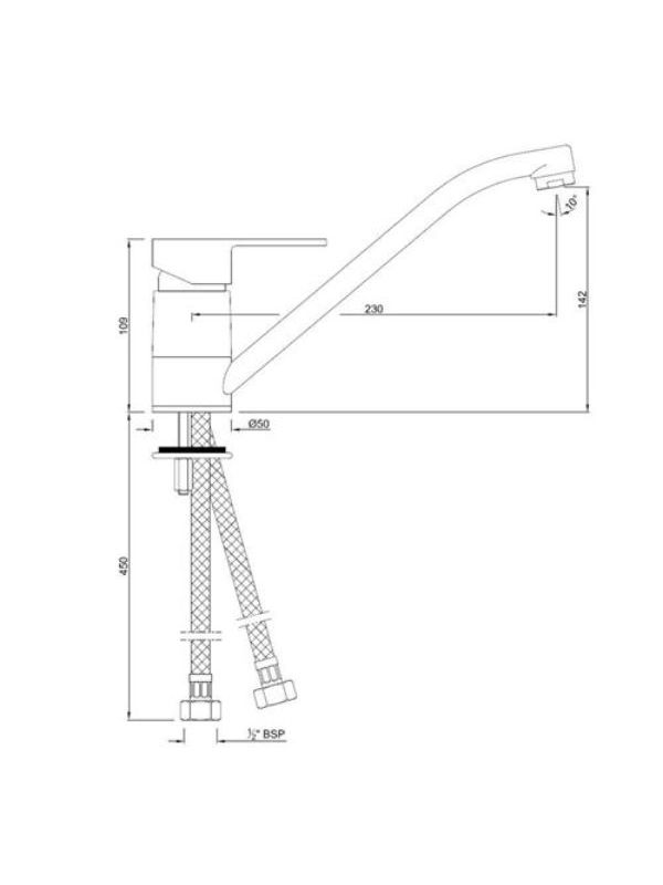 Single Lever Sink Mixer with Swinging Spout (Table Mounted Model) with 450mm Long Braided Hoses