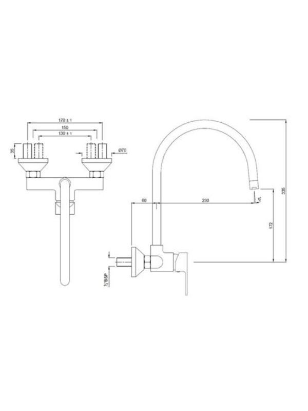 Single Lever Sink Mixer With Swinging Spout on Upper Side (Wall Mounted Model) With Connecting Legs & Wall Flanges