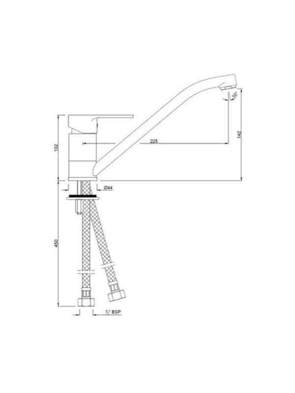 Single Lever Sink Mixer with Swinging Spout (Table Mounted) with 450mm Long Braided Hoses