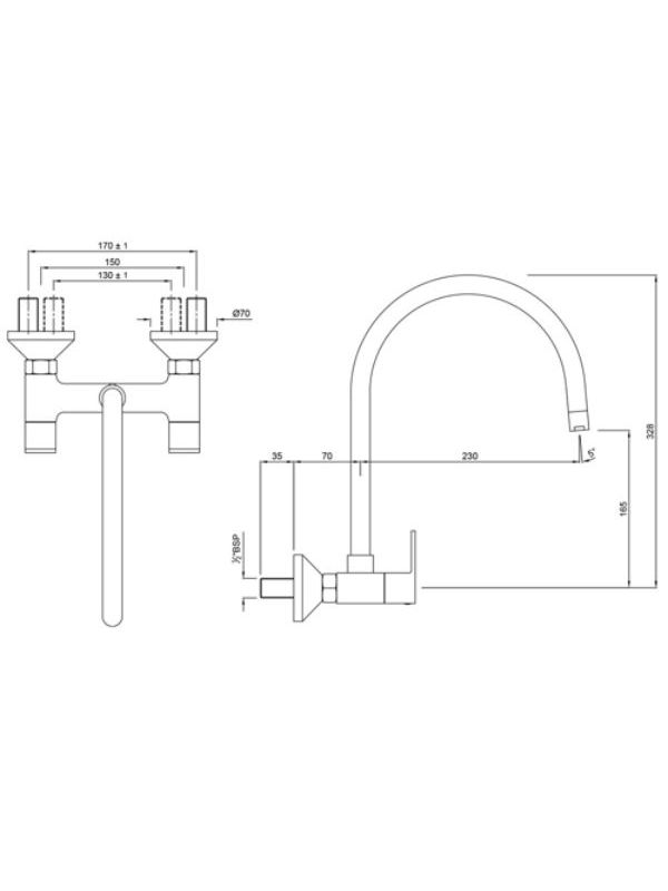 Sink Mixer with Regular Swinging Spout (Wall Mounted Model) With Connecting Legs & Wall Flanges