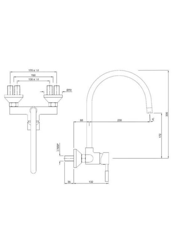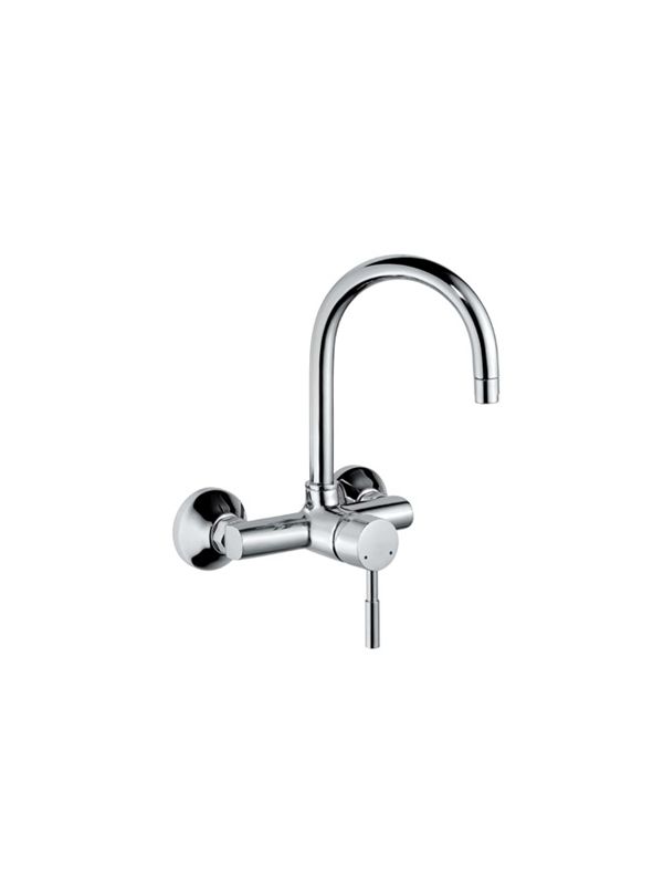 Single Lever Sink Mixer With Swinging Spout on Upper Side (Wall Mounted Model) With Connecting Legs & Wall Flanges