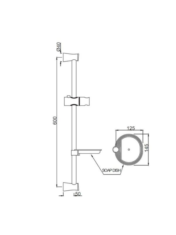 Sliding Rail Dia 19mm and 600mm Long Round Shape with Hand Shower Holder and Soap Dish.