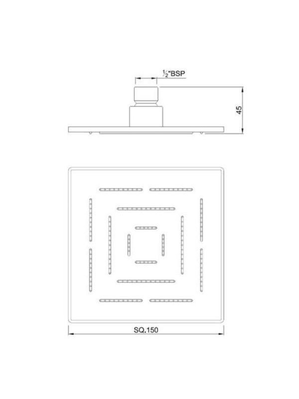 Maze Overhead Shower 150X150mm Square Shape Single Flow (Body & Face Plate Stainless Steel with Chrome Finish) with Rubit Cleaning System