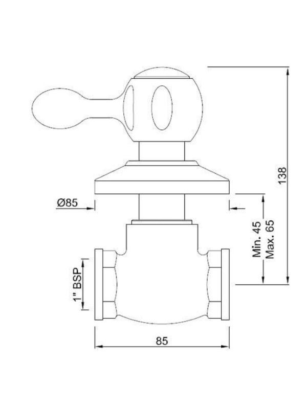 Flush Cock with Wall Flange 25mm (Ceramic Disc Cartridge) with Lever Knob