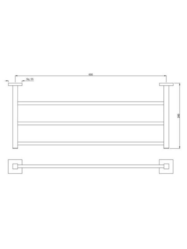 Towel Rack 600mm long without Lower hangers, Stainless Steel