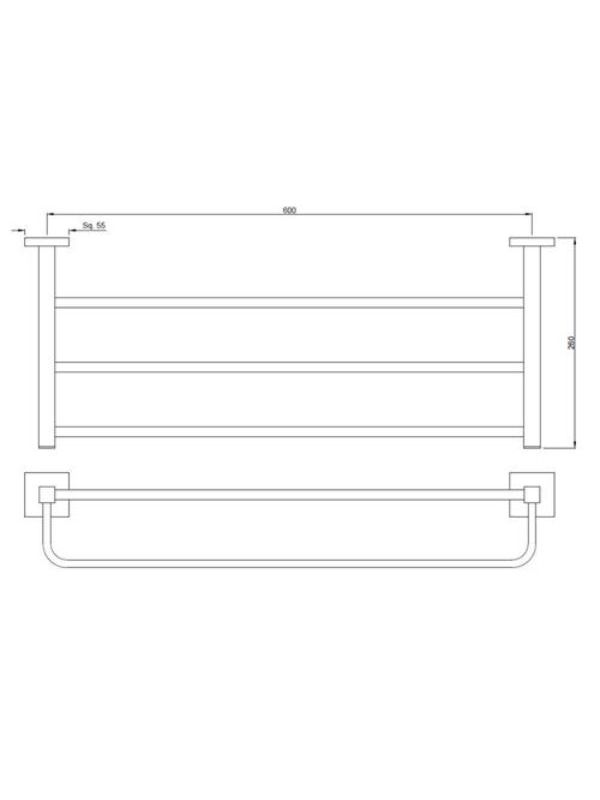 Towel Rack 600mm long with Lower Hangers, Stainless Steel