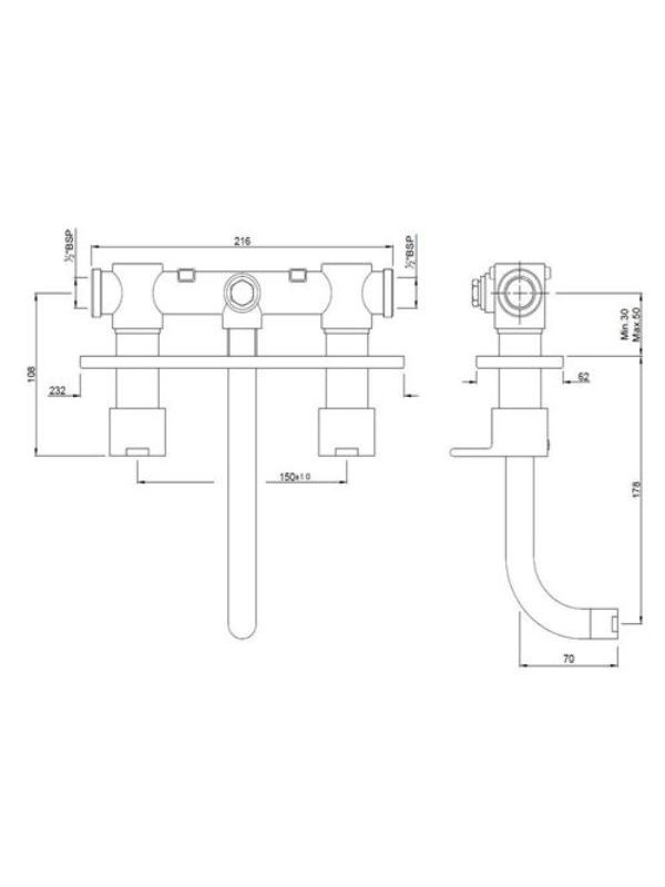 Two Concealed Stop Cocks with Basin Spout (Composite One Piece Body)