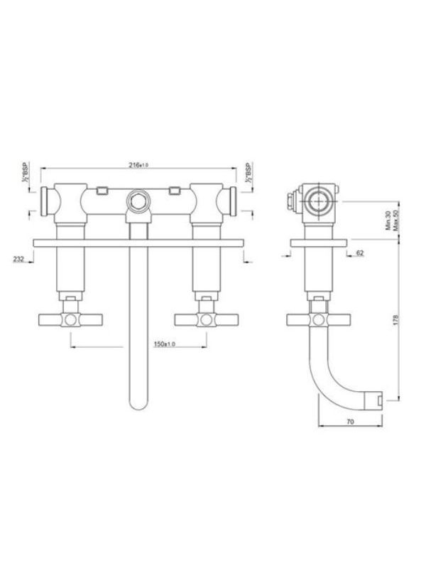 Two Concealed Stop Cocks with Basin Spout (Composite One Piece Body)