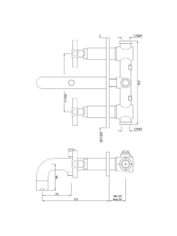 Two Concealed Stop Cocks with Bath Spout Button Attachment (Composite One Piece Body)