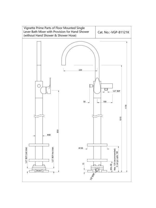 Brand: Jaquar Product Code: VGP-ACR-81121K Product Name: Exposed Parts of Floor Mounted Single Lever Bath Mixer Series: Vignette Prime Finish: Antique Copper Exposed Parts of Floor Mounted Single Lever Bath Mixer with Provision for Hand Shower, without Hand Shower and Shower Hose (Compatible with ALD-121).