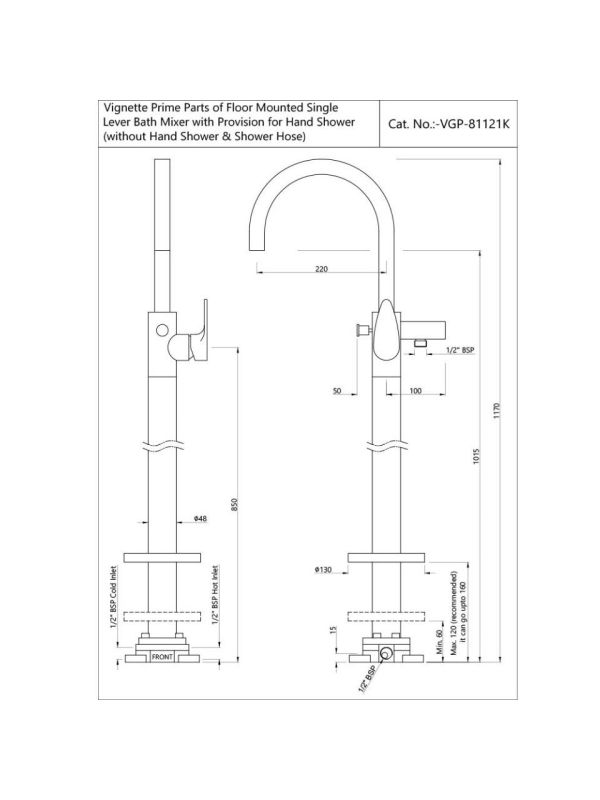 Brand: Jaquar Product Code: VGP-BLM-81121K Product Name: Exposed Parts of Floor Mounted Single Lever Bath Mixer Series: Vignette Prime Finish: Black Matt Exposed Parts of Floor Mounted Single Lever Bath Mixer with Provision for Hand Shower, without Hand Shower and Shower Hose (Compatible with ALD-121).