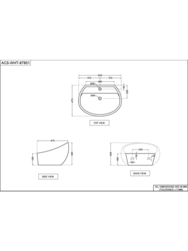 Jaquar Wall Hung Basin ACS-WHT-87801