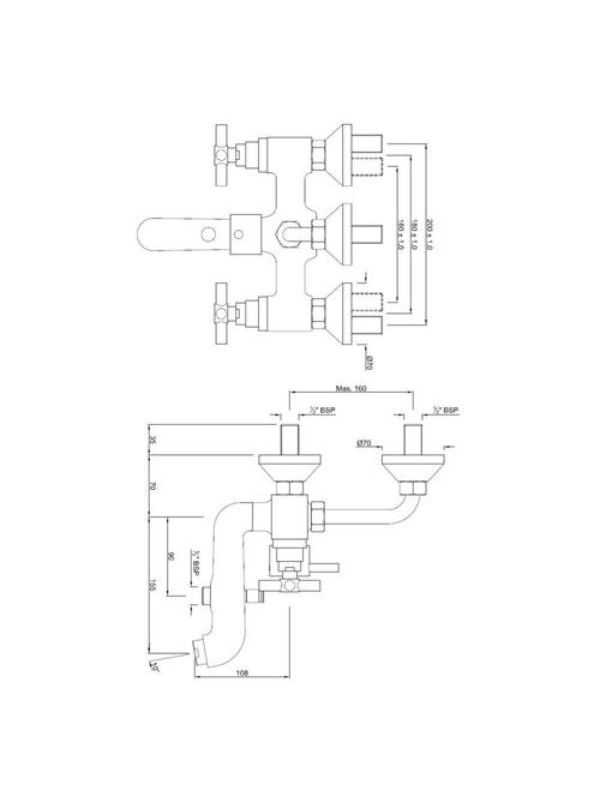 Wall Mixer 3-in-1 System with provision for both Hand Shower and Overhead Shower Complete with 115mm Long Bend Pipe, Connecting Legs & Wall Flange (without Hand & Overhead Shower)